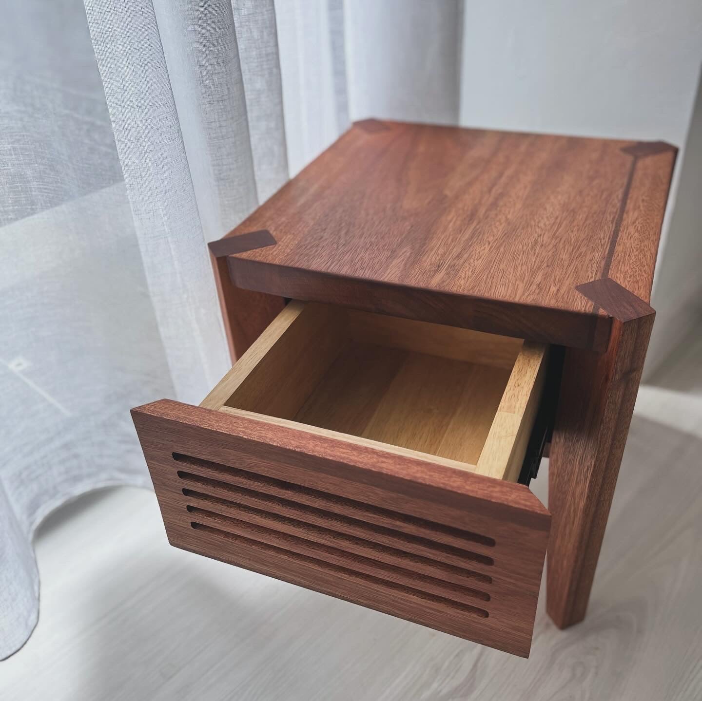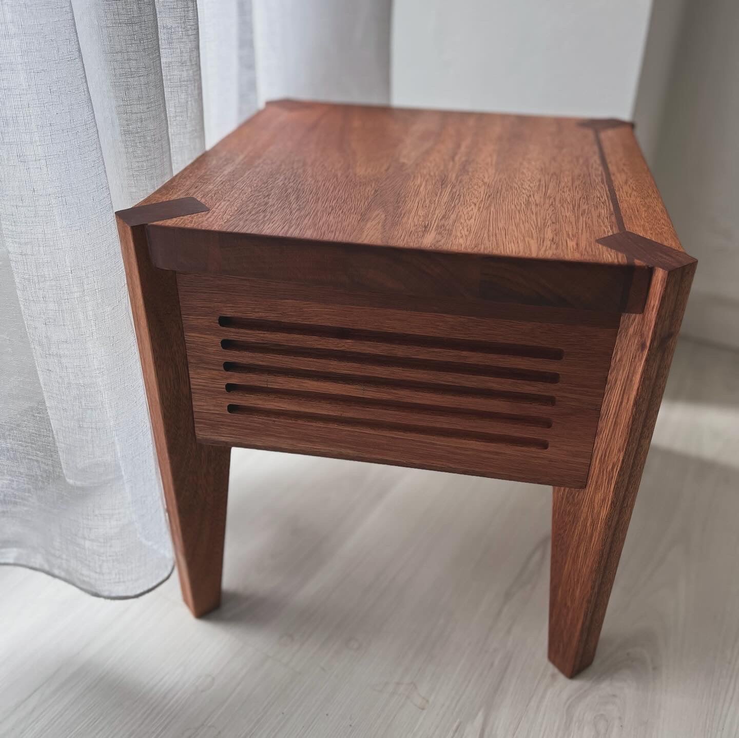 The Thurlow Side Table embodies Japanese-inspired design with its exposed joinery and thick, solid Meranti hardwood top. This table combines minimalist elegance with practical functionality, featuring a refined, clean design that highlights the natural beauty of the wood.